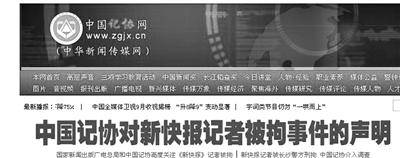新京报讯 (记者杜丁 刘一丁)昨天,中国记协在其官网“中国记协网”头条位置发布声明,称会对“新快报记者被拘事件”继续高度关注,有关部门对此也很重视,希望湖南有关方面能够做出有司法依据的、令人信服的说明。