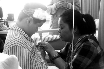 ◆昨日下午,小俊面露难色,因为要将插在左手上两天的针头拔下来了,这让他想起了难忘的疼痛感。