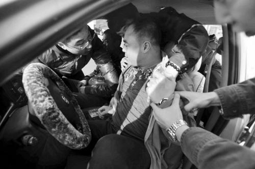 检查行进中,执法队员透露,黑车一般不敢进入市区运营,多数都集中在城郊。在宁官附近,执法人员发现一辆下线出租车正在马路对面逆行,出租车应安装的顶灯、计价器等一应俱全,车上还乘坐着三名乘客。当出租车行驶到一路口等信号灯时,两辆执法车将出租车围困在车流中。最终,驾驶员奋力挣扎拒不配合,撕拽中还将一名执法人员的手背挠破。