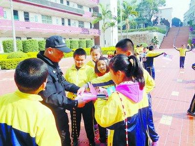 民警在中小学开展雷霆治爆和禁放查非宣传。