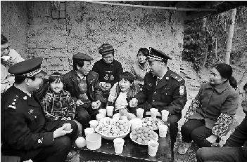 至26日12时,经过三天近2100余公里的长途跋涉,两名民警将这五名残疾青年安全送回家乡。 (记者张宇 庞贺雷摄)