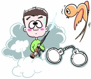 他从父亲的遗物中找到一杆枪,打鸟射鸡,玩得不亦乐乎,就连携妻带子去拜访老丈人时也舍不得放下。于是,他悄悄将枪藏于一根空心竹筒内,带着枪去拜见老丈人了。结果,当场被抓。
