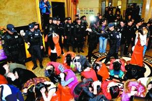 东莞警方组织警力对涉黄场所进行清查。