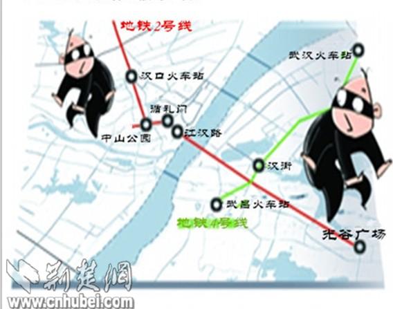 警方介绍,由于地铁站客流量大,加上冬季乘客衣服厚重,行李多,节假日成为扒手们的“黄金季节”,扒窃“热点地区”已从火车站周边拓展到相邻的地铁站内。在已开通的三条地铁线路中,有8个站点小偷最容易光顾,分别是光谷广场、循礼门、江汉路、中山公园、汉街、汉口火车站、武昌火车站、武汉火车站。