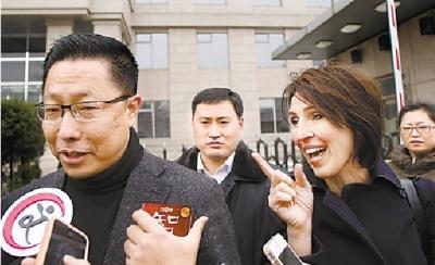 上午李阳和KIM在法院门口 程宁 摄