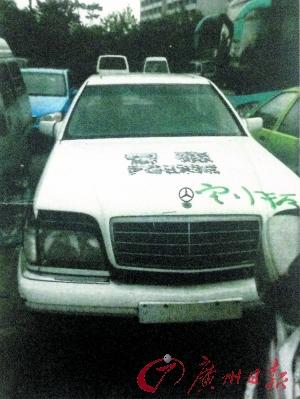 一切都源于去年11月6日,茂名警方扣押了一辆神秘车辆。这辆车是一辆老款无牌奔驰轿车。车头盖部分有被涂去的“警察”和“POLICE”字样。车顶有特别的支架,应是之前放警灯的地方。从车上的纯白颜色和这些特征,不难看出它曾经是一台警车。