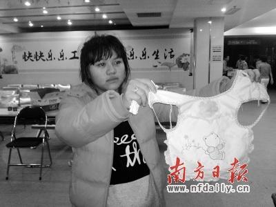 女婴母亲展示沾有女婴吐出血迹的衣服。南方日报记者陈晨 摄