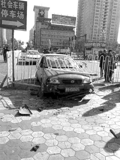 记者从武警牡丹江市支队了解到,8日14时10分,在牡丹江市光华街,一辆红色轿车行至火车站站前广场时,突然左转弯,加速向火车站售票厅冲去,撞上广场上的护栏后停下。随后,车上副驾驶位置下来一名20岁左右手持斧头的男子。男子翻越护栏,朝站前巡逻的公安特警巡逻车走去,在车身上乱砍,并将两侧车灯砸坏。