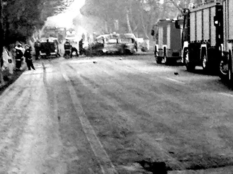 昨日凌晨这里突发一起惨烈车祸,一台面包车与一台轿车相撞并爆燃,4人当场身亡,3人严重烧伤。据伤者和目击者介绍,事发前,面包车上5人发现轿车上2人在偷路边货车上的柴油,便一路追随,不想意外发生了碰撞。