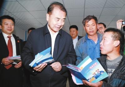 河南高院院长张立勇进建筑工地向农民工普法(图)