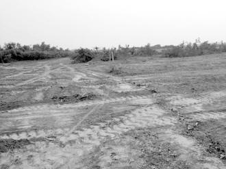 图为被毁坏的耕地上车轮印清晰可见。 马岳君 摄