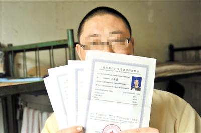 王进展示他取得的自考课程合格证。 通讯员 卢洋 摄