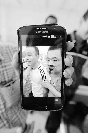 目击者手机所拍事发时画面,左侧为打人男子,右侧为李明海。