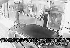 这段视频为时共2分23秒,视频显示,今年2月18日12点09分,绍兴市越城区城南街道党委书记范文革坐单位公车来到越城区某休闲会所,很快非常熟练地走进了会所大厅,并且在女服务员的引导下进入包厢。