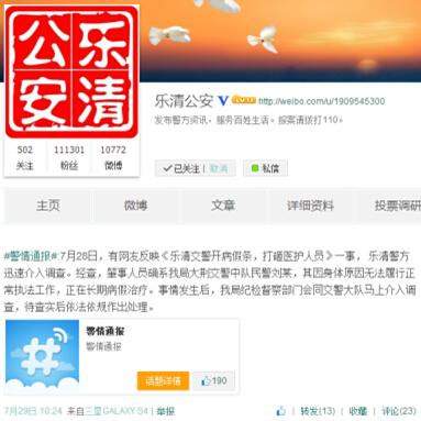 “乐清公安”微博截图