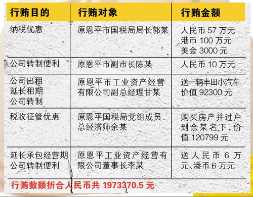 而在行贿案中,原恩平市副市长陈某、国税局局长郭某、国税局总经济师余某、恩平市工业资产经营有限公司副总经理甘某、恩平工业资产经营有限公司董事长李某等人深陷其中。