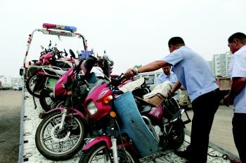 整治行动中民警查扣的摩托车。 刘腾腾 摄