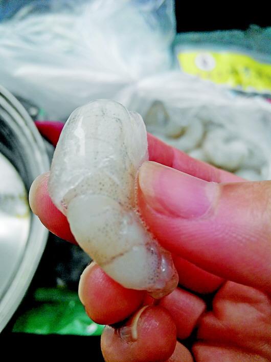 冻虾仁多数穿着厚“冰衣”。