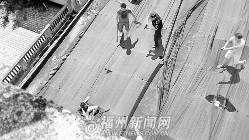 一名身穿蓝色T恤的男子不顾握刀的手还流着血,死命往前奔跑,便衣警察一路追击。男子跑进居民楼里,“飞檐走壁”从这栋楼跳到那栋楼,警察紧追不舍,将男子围堵在屋顶平台,最后一脚将其扫倒在地,铐上手铐。这是前日中午在三明大田县上演的一场真实版警匪大追捕行动。