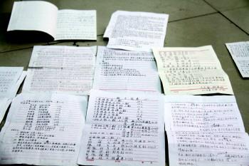 警方在传销窝点查获的上课资料。 本报记者 王小会 摄
