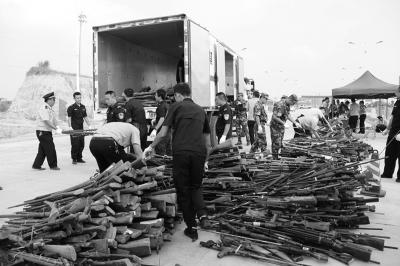 海南销毁一批枪爆物品 包括各类非法枪支4083支