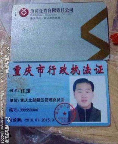 其中一人准备开车离开时,她拦下车抢走了他的钱包,里面放有一张工作证。工作证显示“他叫任渊,是重庆市行政执法证,单位是重庆北部新区管理委员。”陈女士说,当时任渊没有参与殴打,但有参与调戏。