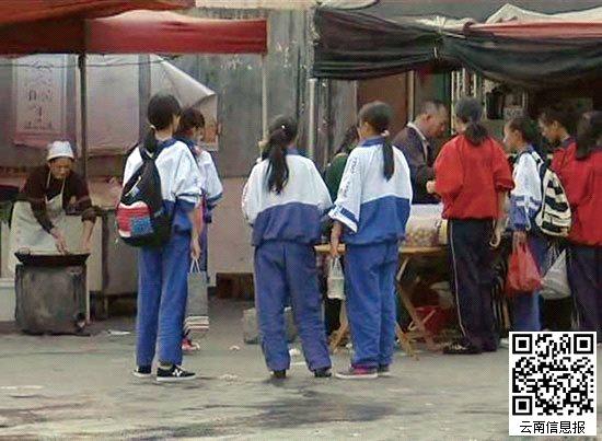临沧云县民族中学门口,放学后买零食的学生。