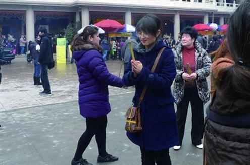 时间追溯回2011年3月19日,23岁的烟台姑娘王海冰和朋友一起来到了上海城隍庙,她请上一炷香,站在了寺内数人高的香鼎前,笑着招呼朋友赶紧为她拍照。