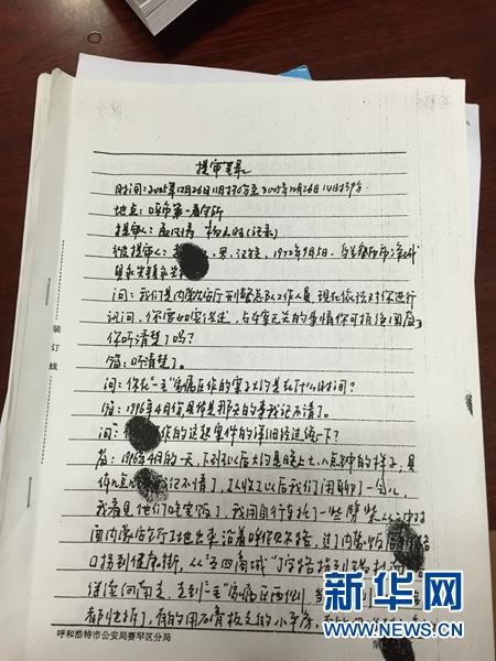 这是当年警方讯问赵志红的提审笔录复印件(1月5日摄)。 新华社记者 张丽娜 摄