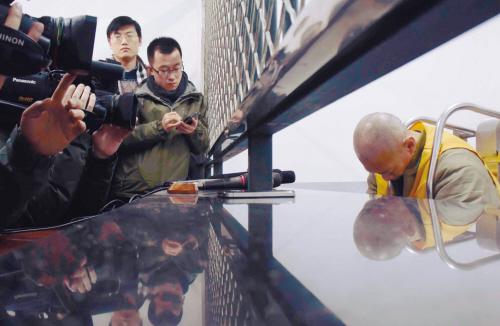 看守所内,落网的李某某始终低着头,不愿正面示人
