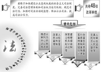 推进以审判为中心的诉讼制度改革,实行办案质量终身负责制和错案责任倒查问责制,完善人民陪审员和人民监督员制度……实施方案提出,着眼于加快建设公正高效权威的社会主义司法制度,完善司法管理体制和司法权力运行机制,规范司法行为,加强对司法活动的监督,保证公正司法,提高司法公信力。