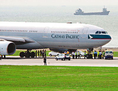 肇事的客机编号CX 780,去年4月接载322名乘客及机组人员由印度尼西亚泗水飞抵香港时,两个引擎突然失灵,急降香港国际机场。
