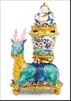 具有浓烈中国风色彩的镶鎏金铜香熏炉。澳门日报图