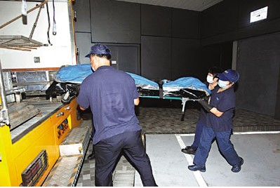 仵工将上吊身亡男生尸体舁送殓房。来源:香港《文汇报》