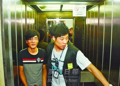 澳门司警带走一名男子协助调查。来源:澳门日报