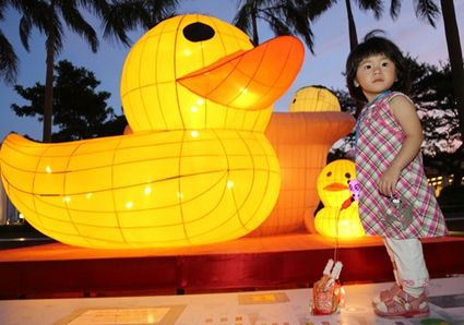 图:早前成为城中热话的“黄鸭”,已化身彩灯主角,由10月10日至13日亮相文化中心露天广场。来源:香港《大公报》