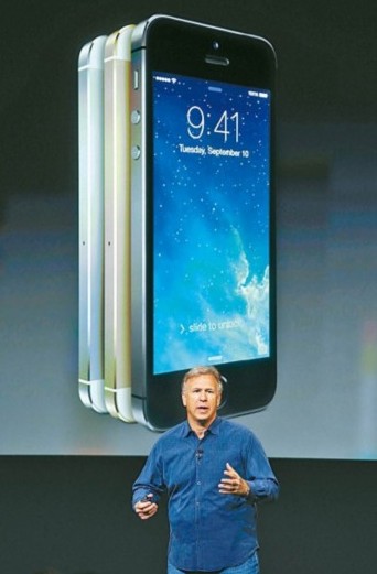 同时推出的iPhone 5S,苹果形容为“我们所创造的最具前瞻性手机”,“冀成智能手机的黄金标准”,提供银色、金色和“太空灰色”机身供选择。iPhone 5S被视为iPhone 5的升级版,采用A7处理器,比A6快一倍,是2007年第一代的40倍。iPhone 5S配备新拍摄系统,全新安全系统Touch,利用home按钮的感应器以指纹解锁。