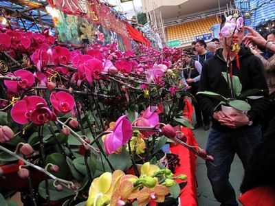 1月26日,在香港荃湾年宵市场的兰花大卖。为期7天的年宵市场25日揭开序幕,香港各个年宵花市热闹,充满过年气氛。香港中通社图片