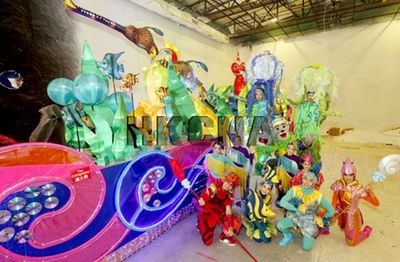 1月27日,香港海洋公园将于大年初一2014新春国际汇演之夜上展出的贺岁花车“海洋奇遇贺新岁”亮相,花车以海龙及海马为主角。届时,形态优雅的海龙及海马将带领花车与逾30名化身成小海星、小海豚、小龙虾的小朋友穿梭闹市,鼓励巿民及游客保护美丽海洋。香港中通社图片