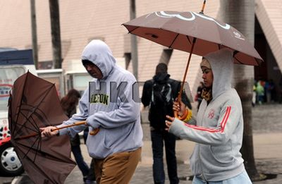 2月9日,香港降雨令气温下降,民众出行全副武装。近日,受到一股强烈冬季季候风影响,香港将持续寒冷,最低气温降到10摄氏度。香港中通社图片