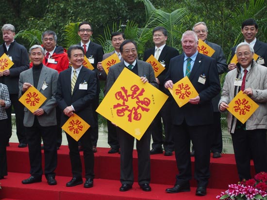 参与互动(0) 香港大学校长徐立之与学校各院系管理层向香港传媒界人士拜年。(摄影:曹海扬)