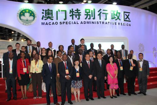 参与互动(0)张祖荣与葡语国家代表在澳门馆前合影。