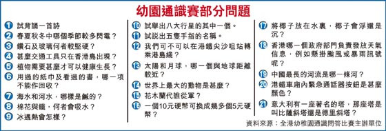 香港首届幼儿园通识比赛 题目难学童吓到哭(图)