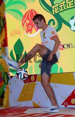 7月5日,香港apm商场为回应政府筑福香港“共融共享世界杯”计划,特别请来多位世界级花式足球好手访港献艺。香港中通社图片