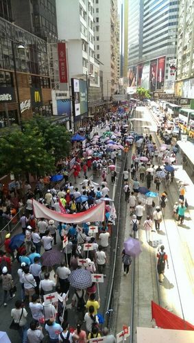 组图:香港数万人游行“保普选反占中”(5)
