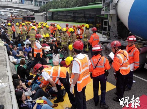香港发生三车相撞交通意外 大量乘客受伤(图)