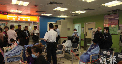 大批警员赶至急诊室增援。(图:香港《明报》网站)