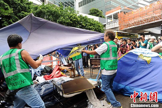 香港特区政府清理立法会外非法“占中”后遗留物品
