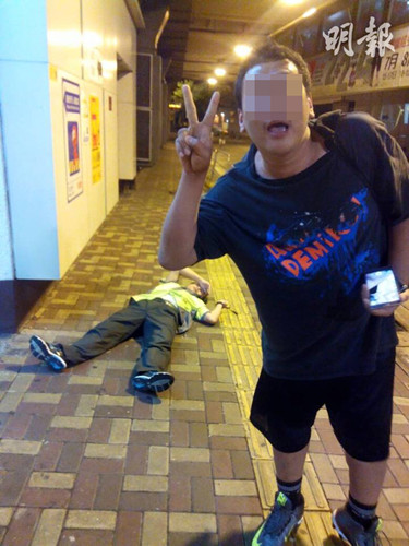 司机受伤倒地时,曾有男子在其身边举起“V”字手势拍照,但暂未知该男子是否与事件有关。《明报》(fb小心驾驶图片)
