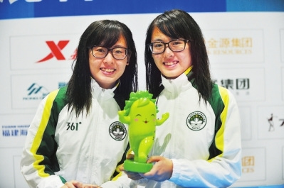 走下赛场,两位小姑娘都戴上了黑框眼镜,学生味儿十足。谈吐间的甜美的笑容,更是这个年纪应有的开朗和乐观。“她们很活泼,平时和她们在一起非常开心。”教练黄成发说。